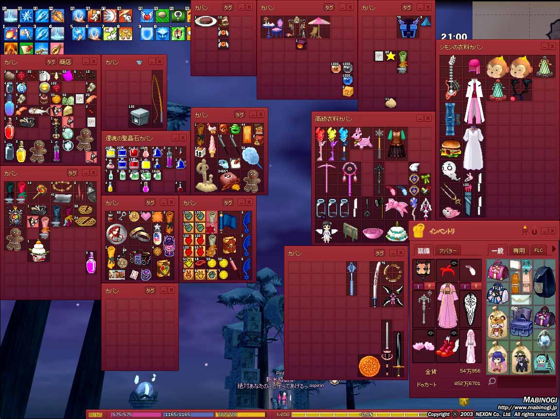 インベントリが完全に「カバン」で埋め尽くされているため、