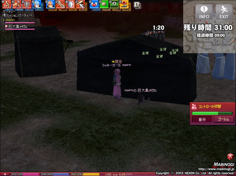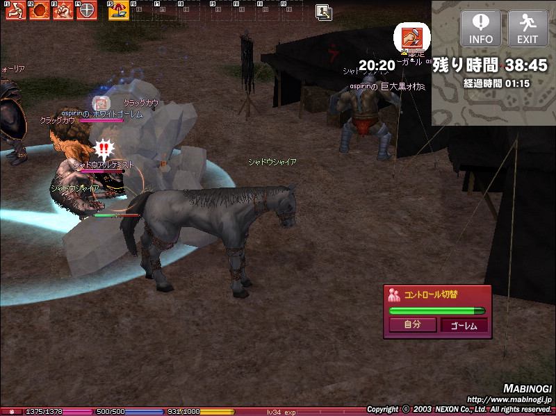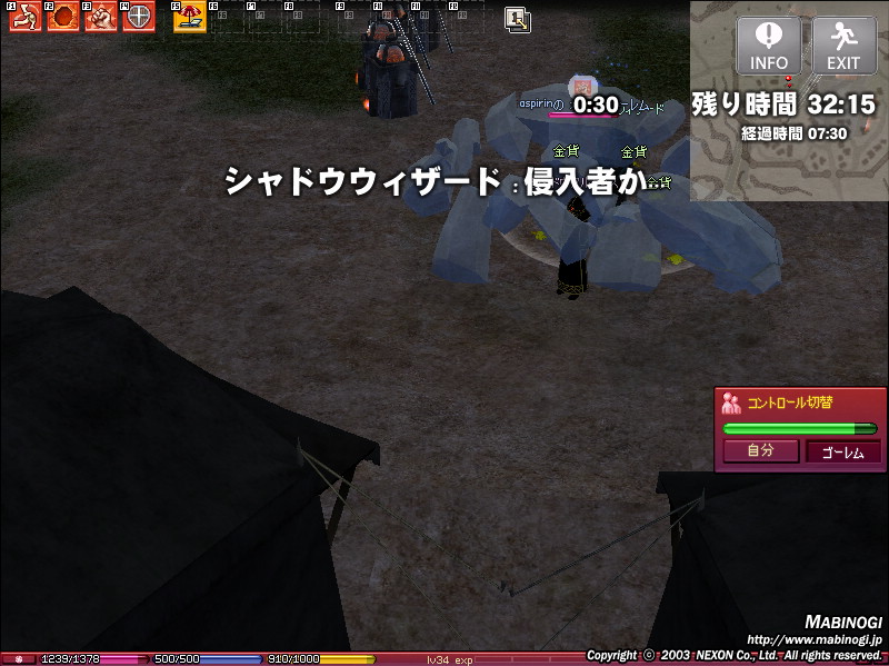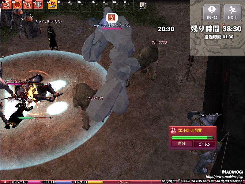 画像右上の残り時間を見てわかるように、1つのゴーレムの寿命が尽きて、2つ目を召喚した状態です。もっと上手にやればゴーレム1つでクリアできるかもしれません。