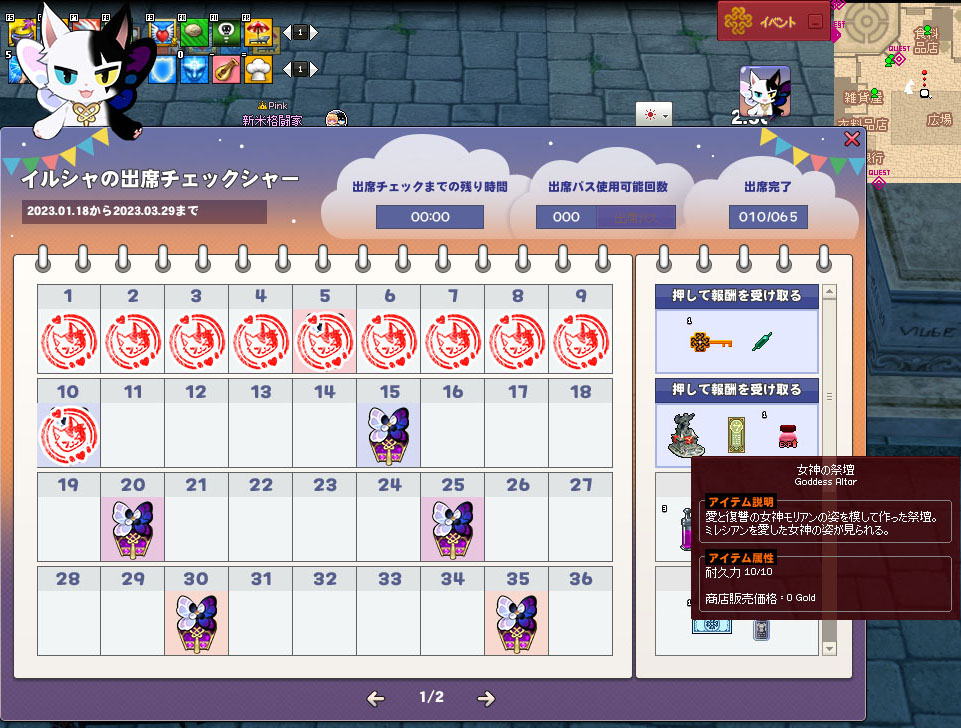 オンタイムイベントは「イベント」と認識しづらいですが、ただ接続しているだけでもらえるので忘れずにインベントリを確認しましょう。