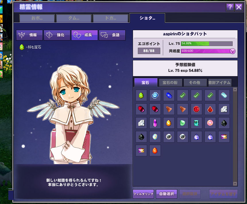 パートナーがしれっとシーズンドゥカートを要求 2023年06月03日 00:08 カテゴリ:マビノギ同行キャラクター Tweet おおっと……受けるつもりはなかったのに「願いを聞く」を押してしまいました。めんまパートナーに25000シーズンドゥカートを渡すなかなか高額のシーズンドゥカートですねぇ… 続きを読む タグ :#パートナー#クエスト#セリフ#ネタ#あの日見た花の名前を僕達はまだ知らない。