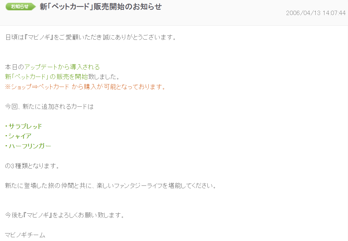 リアルの徒歩移動はサラブレッドなどの騎乗ペットがなかった20年前のプレイに似ている 2026年04月21日 00:25 カテゴリ:マビノギマナビノギ Tweet 乗って走れるペットが実装されたのは2006年4月13日のアップデート。20年前ですw移動手段は徒歩がメインであり、夜間に特定の地域へ一方通行できるムーンゲート、それに蜜蝋の翼で各町の広場へ瞬間移動ができる程度だったのです。信じられないでしょうが、、、当初は騎乗ペットがいなく、ムーンゲートは行き先が固定されていて夜間しか利用できませんでした。イリア大陸もないので大陸移動も不可能。そして……それでも不自由ではなかったという事実。 続きを読む タグ :#ネタ#ほのぼの#マナビノギ#ブログ#建造物