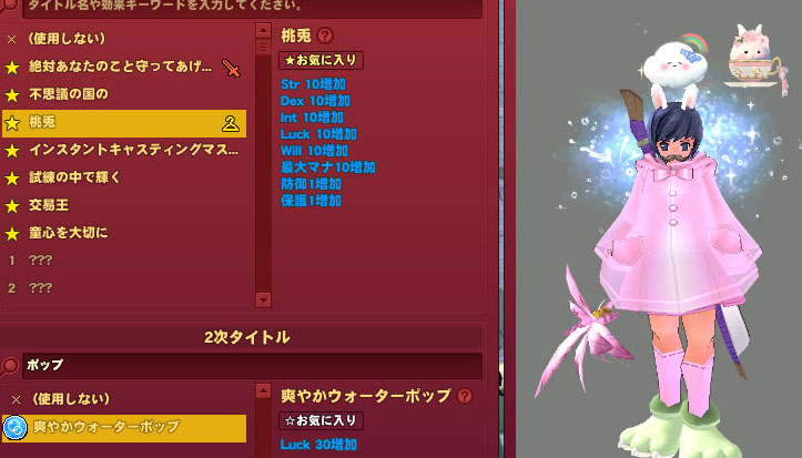 爽やかウォーターポップ2次タイトル キャラの背後にエフェクト 2026年04月14日 00:06 カテゴリ:マビノギ動画 Tweet 2次タイトルの多くはエフェクトのためにあるといっても過言ではなく、ステータス効果はほとんどLuck 30増加のみです。「幸運児」の専用エンチャントだけでなく2次タイトルがあったらいいのにww 意味のあるなしではなく単純に幸運児が好きw爽やかウォーターポップ2次タイトル。なんだか涼しげでいいエフェクト…⛲ 続きを読む タグ :#イベント#タイトル#ネタ#GIF