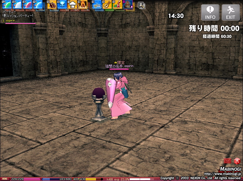 役目を終えたケルベロスは… 2011年03月02日 00:22 カテゴリ:影ミッション魔法 2Tweet 初級でもいいのでタラの影ミッション「ポウォールの襲撃」を進めて、「ワープポータル」を通ることでたどり着ける部屋までいきます。 その部屋のスイッチは中心から微妙にずれているのが特徴で、叩くとケルベロスとモンスターが出現します。 モンスターを全滅させないように注意し、1匹以上残して離れましょう。 あとはひたすらケルベロスの光に合わせてマジックシールドを使います。 制限時間(60分)が過ぎるとケルベロスは即座に攻撃を中断し、スイッチの状態に戻ってしまいます。 なんだか悲しいです… いくら叩いても何も起こりません。ドアも開きません。 タグ :#ポウォールの襲撃#トレーニング#スキル#マジックシールド#モンスター#仕様 「影ミッション」の最新記事 「魔法」の最新記事 この記事へのコメント コメント一覧 (2) 1. 鶫 2011年03月02日 07:59 あの。 もほや虐めの領域では? 2. あすさん 2011年03月02日 10:38 >鶫さん これで鍛えて、どんなボルトにも耐えてみせます…!? コメントフォーム 名前 コメント 記事の評価 リセット リセット 顔 星 情報を記憶 コメントを投稿する この記事へのトラックバック