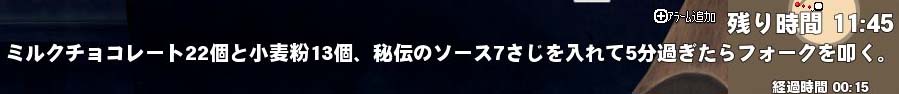 料理Dは材料50点と時間50点だから時間ちょうどでも50点取れますね。