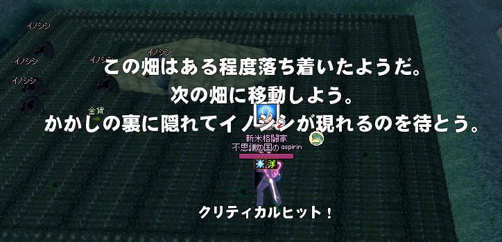かかしの裏に隠れてイノシシが現れるのを待とう。((( ;゚Д゚)))ガクガクブルブル
