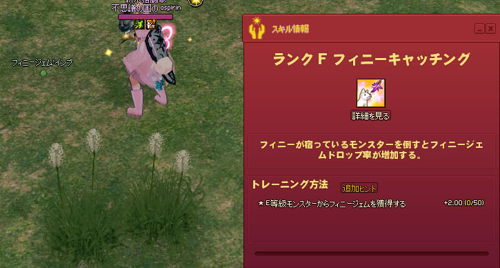 フィニーが宿っているモンスターを倒すとフィニージェムドロップ率が増加する。