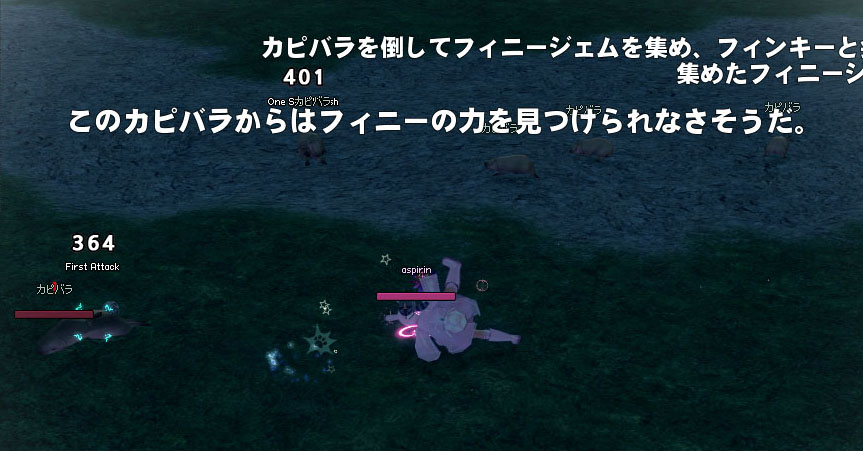 キラキラ光っているカピバラを倒すのですが、、、、、