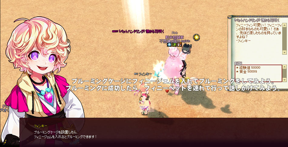 手順を踏んでいない状態でフィンキーに話しかけるとやるべきことが何度でも表示されます。
