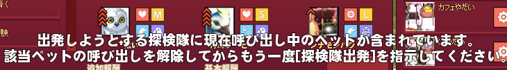 該当ペットの呼び出しを解除してからもう一度[探検隊出発]を指示してください。