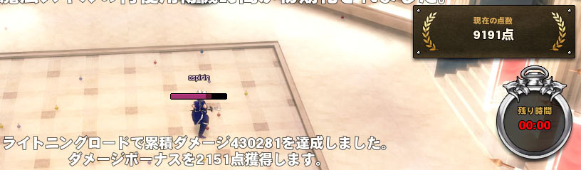 現在の点数9191、累積ダメージ430281、ダメージボーナス2151で……