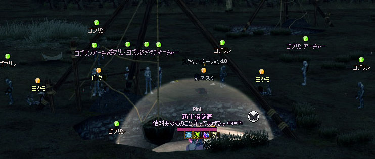 白クモと野ネズミを倒すと……すぐさまゴブリンが湧きました。