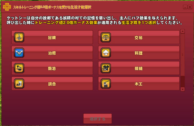 スキルトレーニング値2.0倍ボーナスを受ける生活才能選択