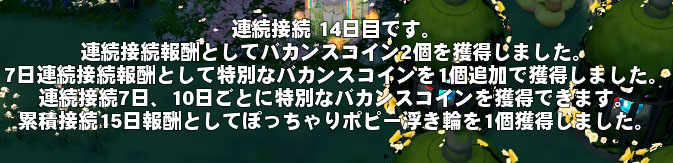 連続接続報酬としてバカンスコイン2個を獲得しました。