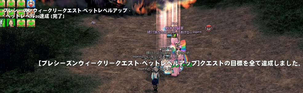 「ペットレベルアップ」「ペットレベル20を達成する」……
