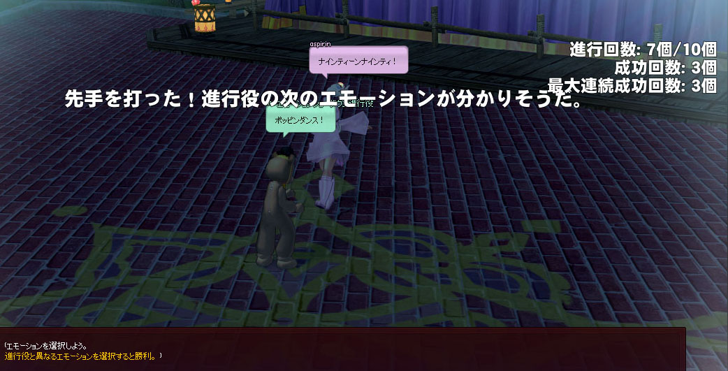 その後、進行役の次の手を見抜くので、青文字になっているエモーションを選べばいい!