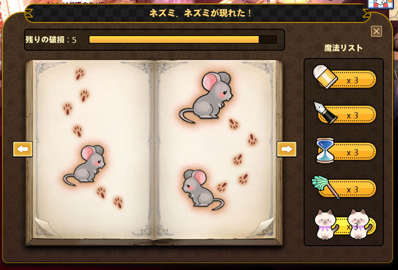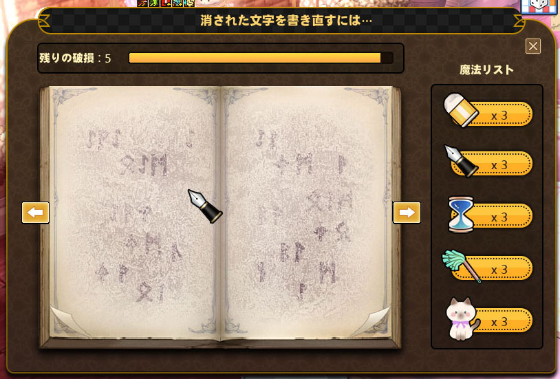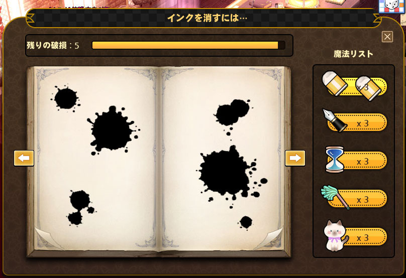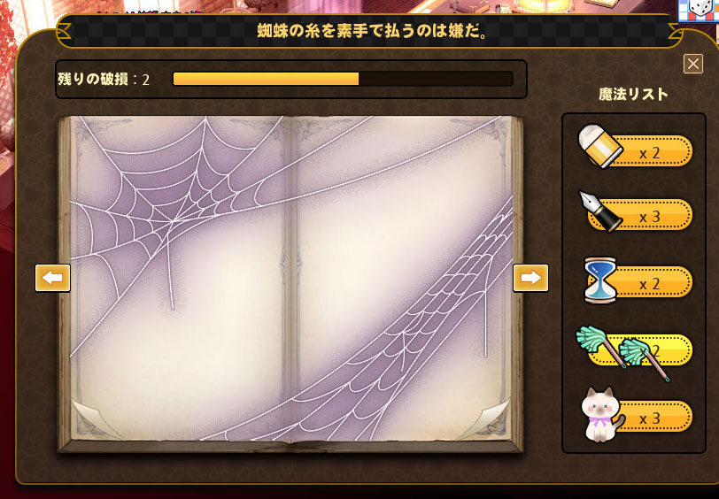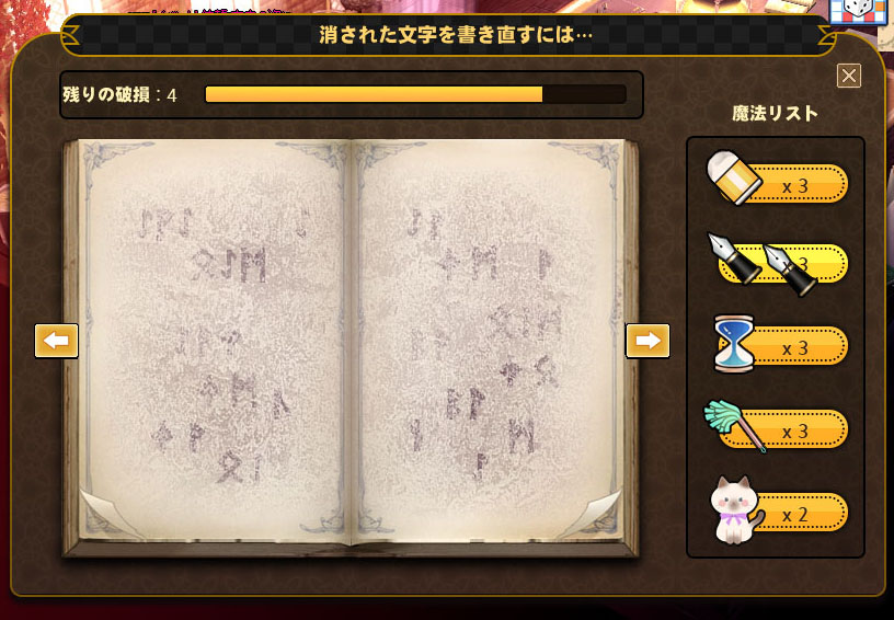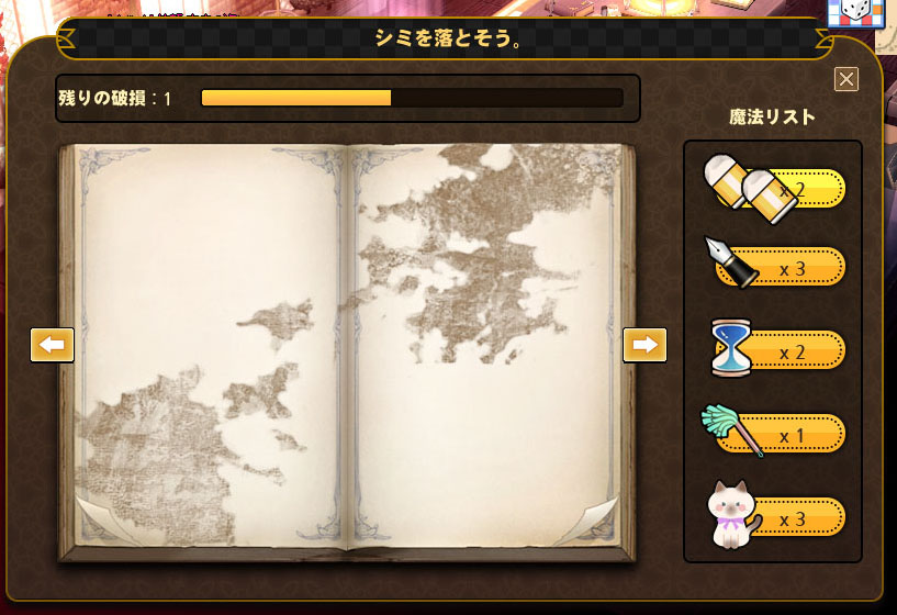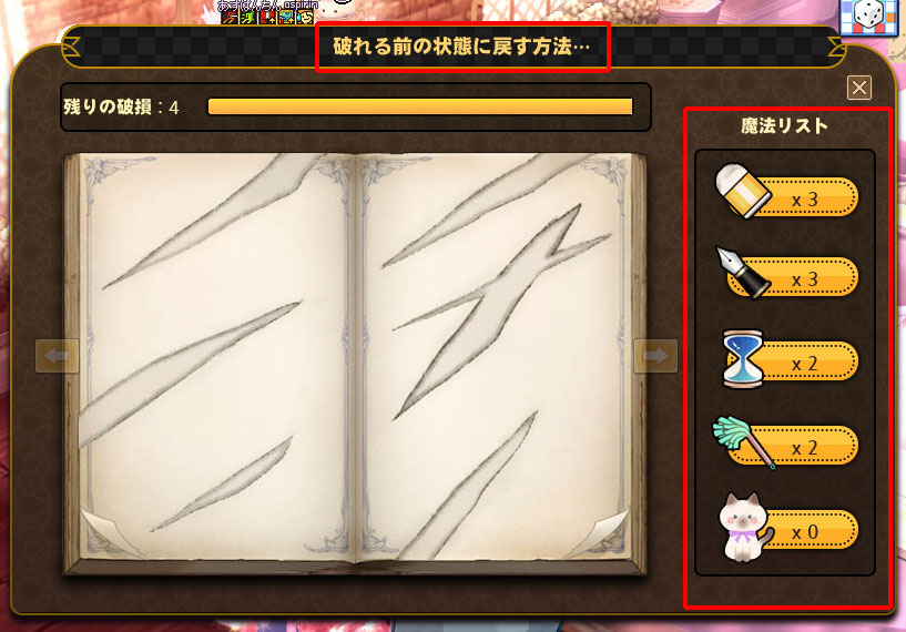 魔法リストから猫をクリックし、書面をクリックするとページがきれいに復元されます。