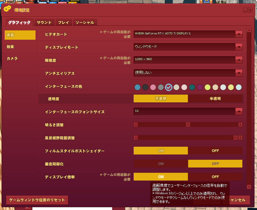 マビノギはネイティブ4Kに上手く対応していないし、HDRもサポートしていません。